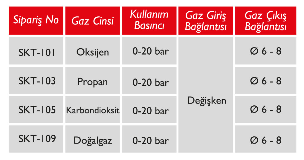 Her gaz için renklendirilmiş bağlantı